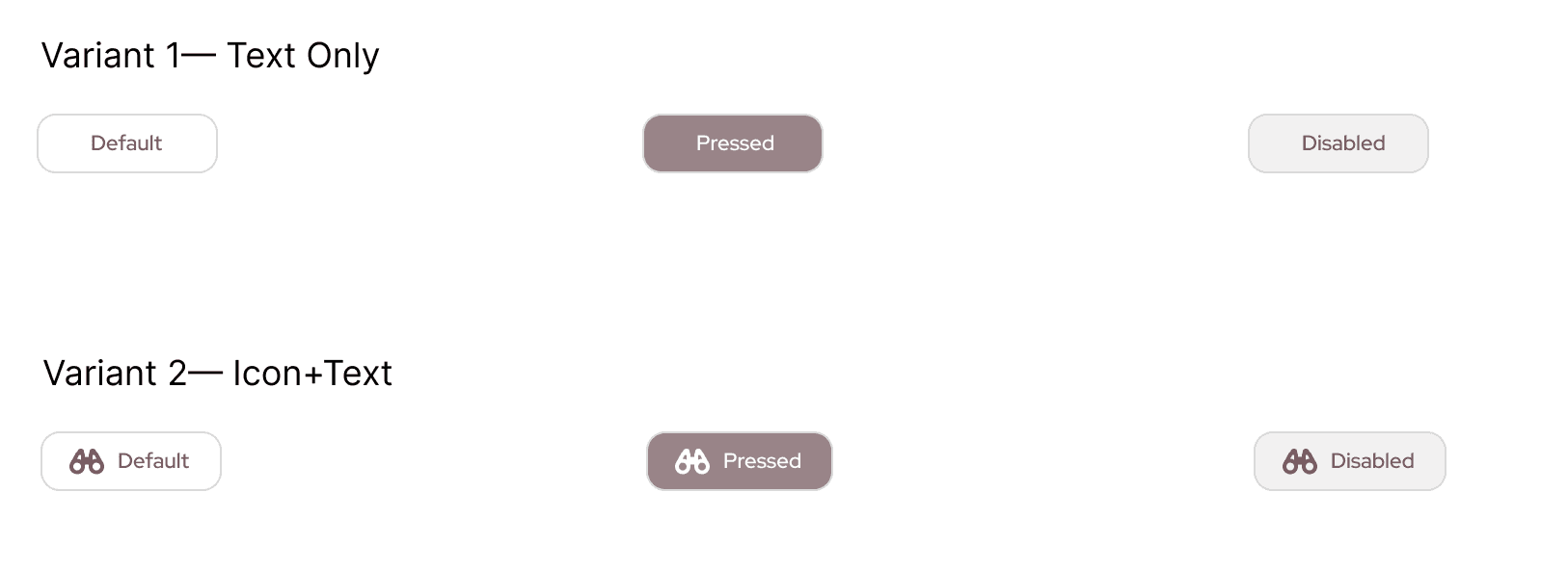 State system follows: Default → Hover → Active → Disabled hierarchy across interactive components.