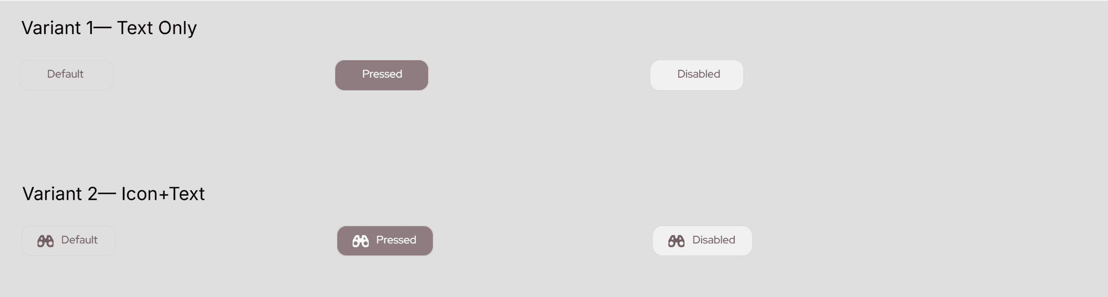 Interactive elements follow Default → Hover → Active → Disabled hierarchy.