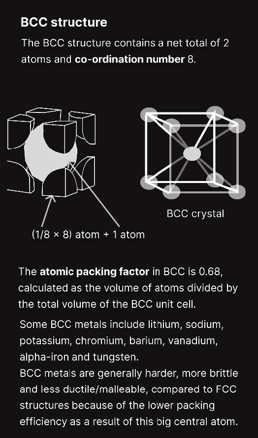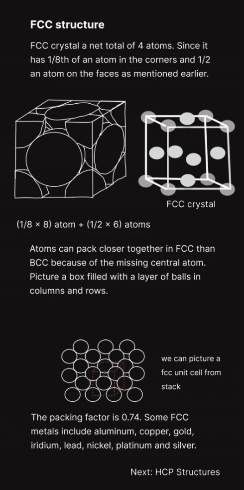 Improved grasp of metal crystal lattice structures- e.g FCC, BCC, and HCP stacking differences