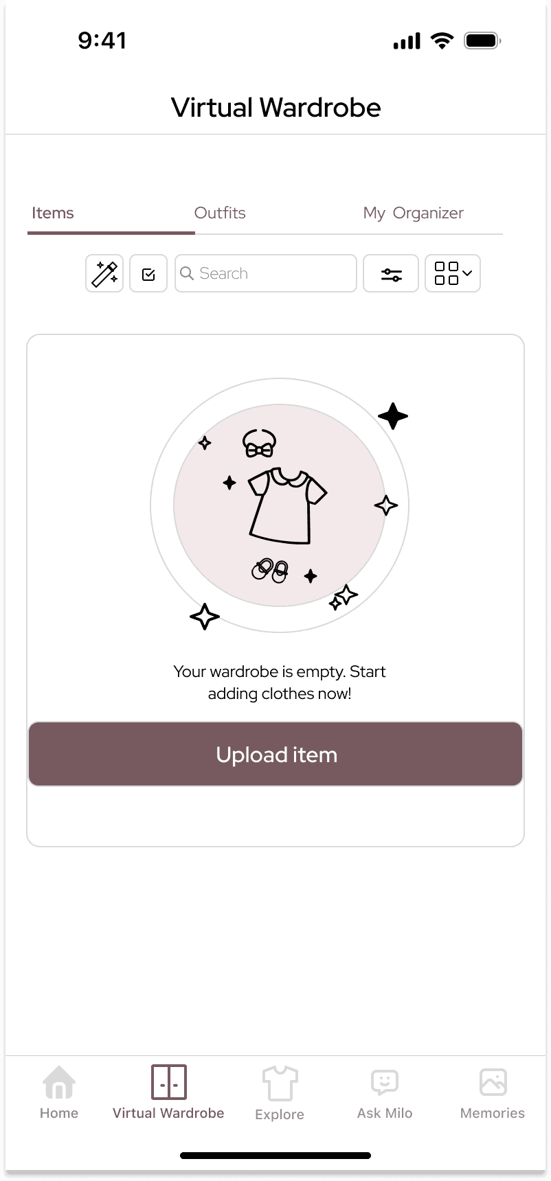The upload/scanning function was integrated into a persistent global action within the wardrobe(as seen in following section).